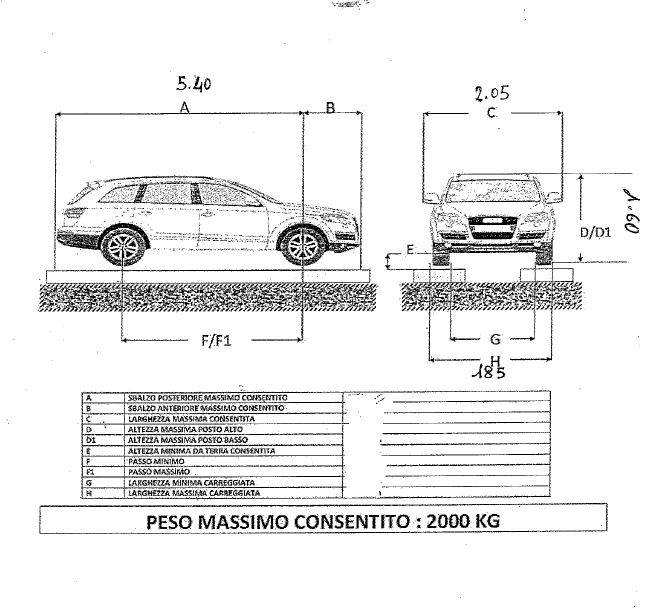 Dimensioni massime vettura insilabile 5400x2050x altezza massima 1600