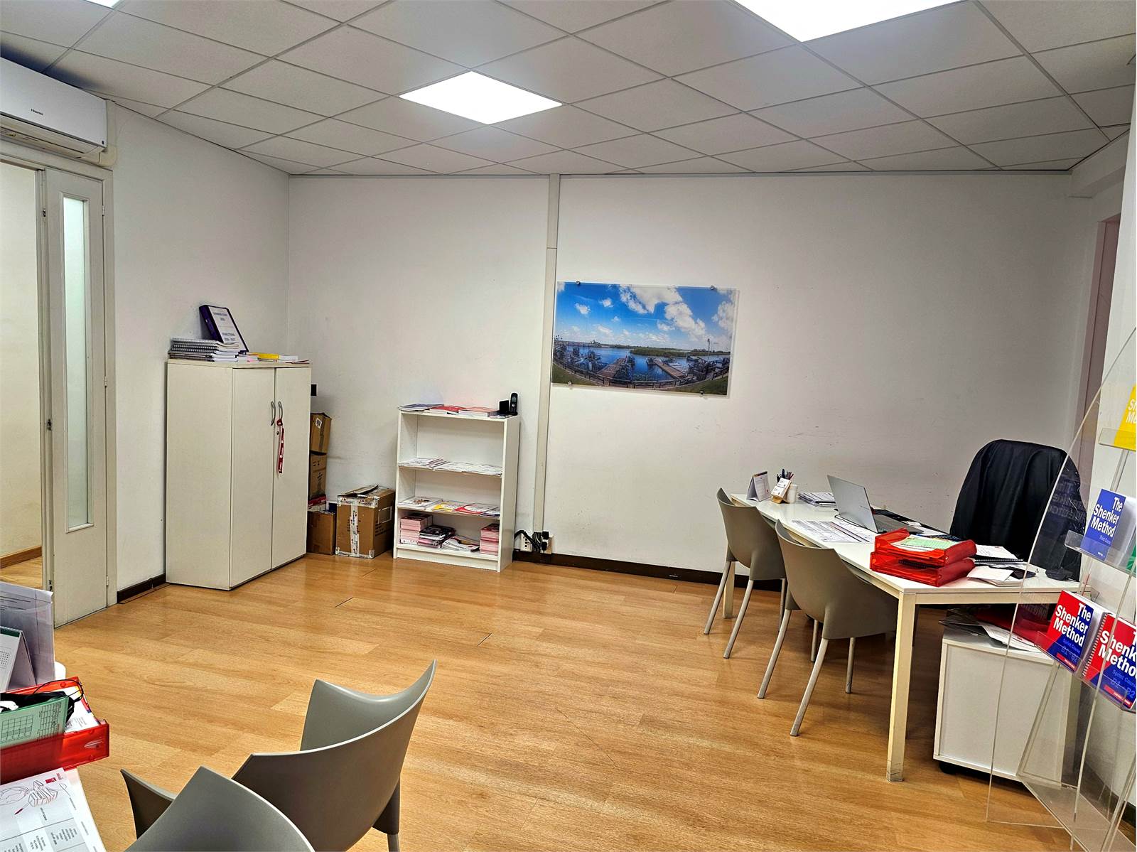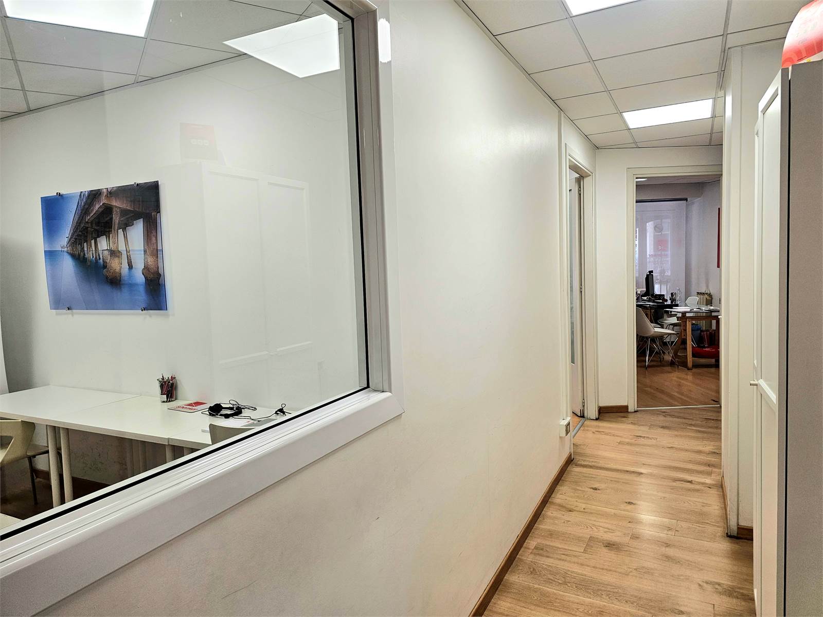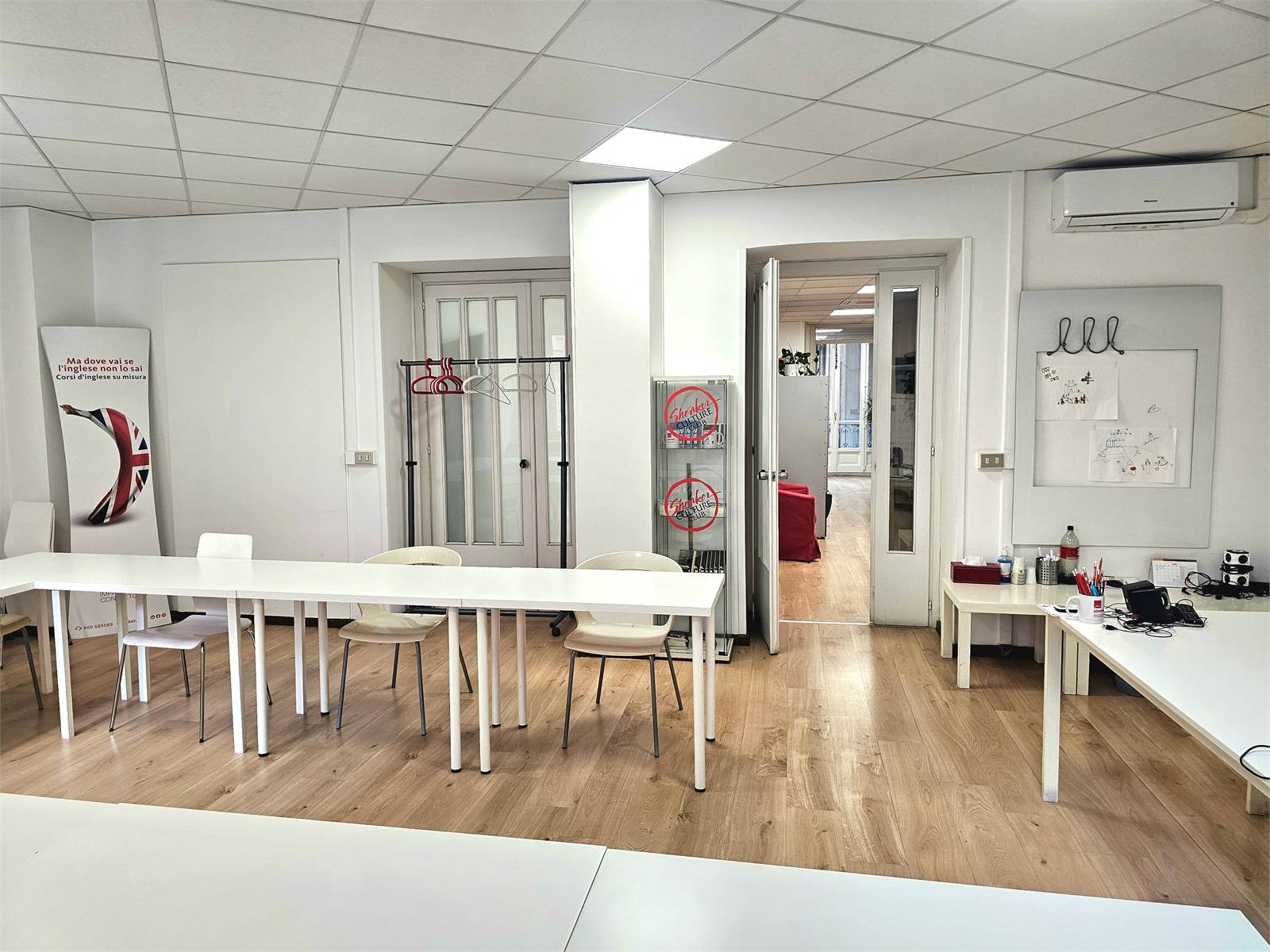 Con doppio ingresso da pianerottolo il principale accesso è su un spazioso vano reception, ampiamente vetrato e con vista su interno corte, dotato di doppio passaggio su corridoio di disimpegno che conduce ad un altro bel vano ad uso ufficio con affaccio su via principale, ad antibagno con bagno dotato di doccia e si collega ad un grande disimpegno ad uso salotto; un vano interno ad uso ufficio ed un' ampia sala riunioni (circa 40 mq) completano la proprietà.