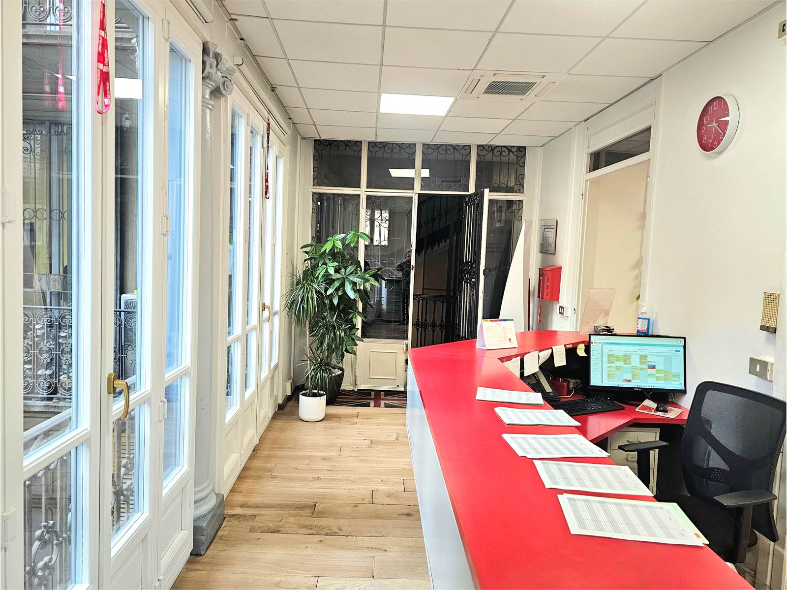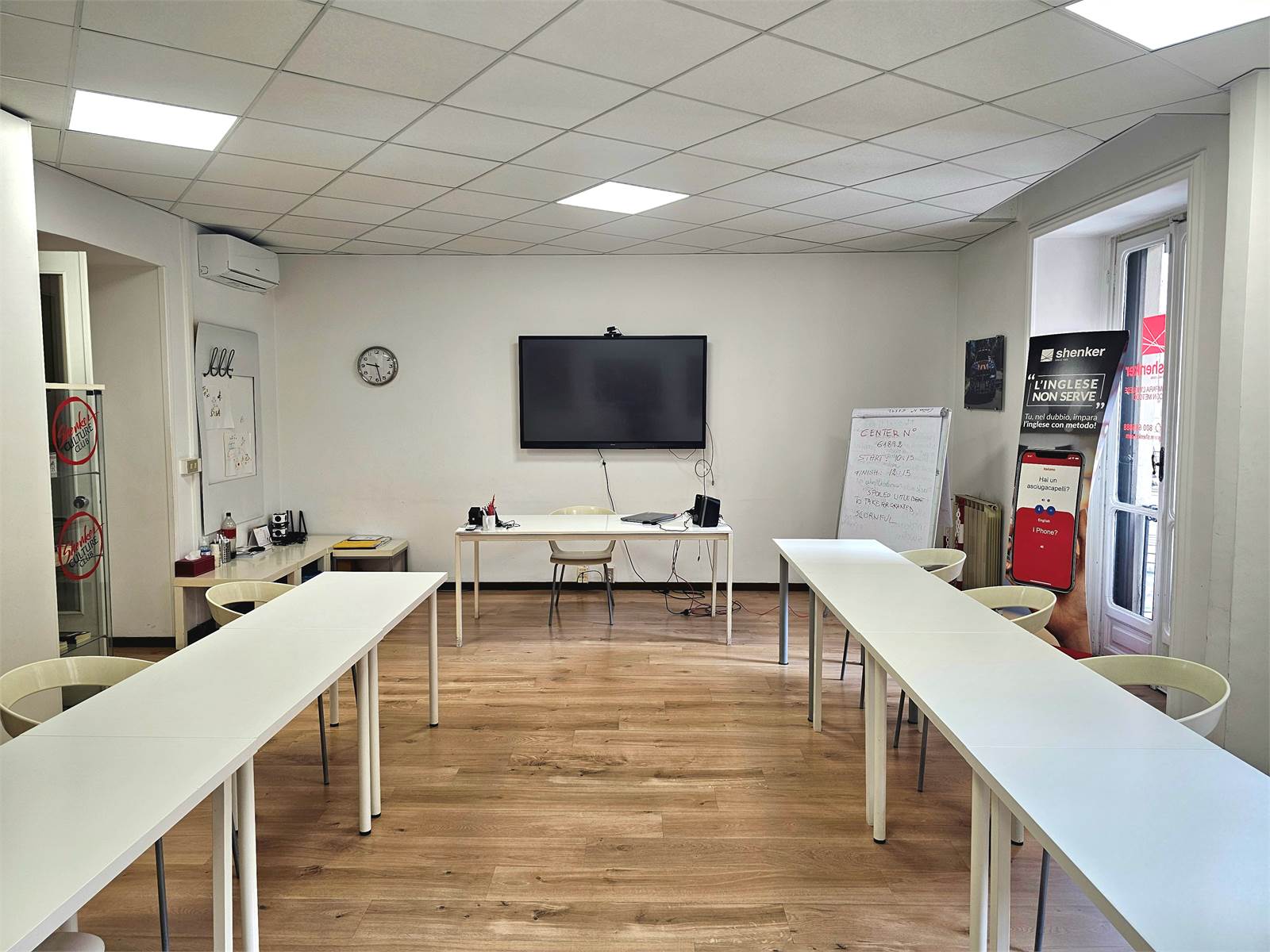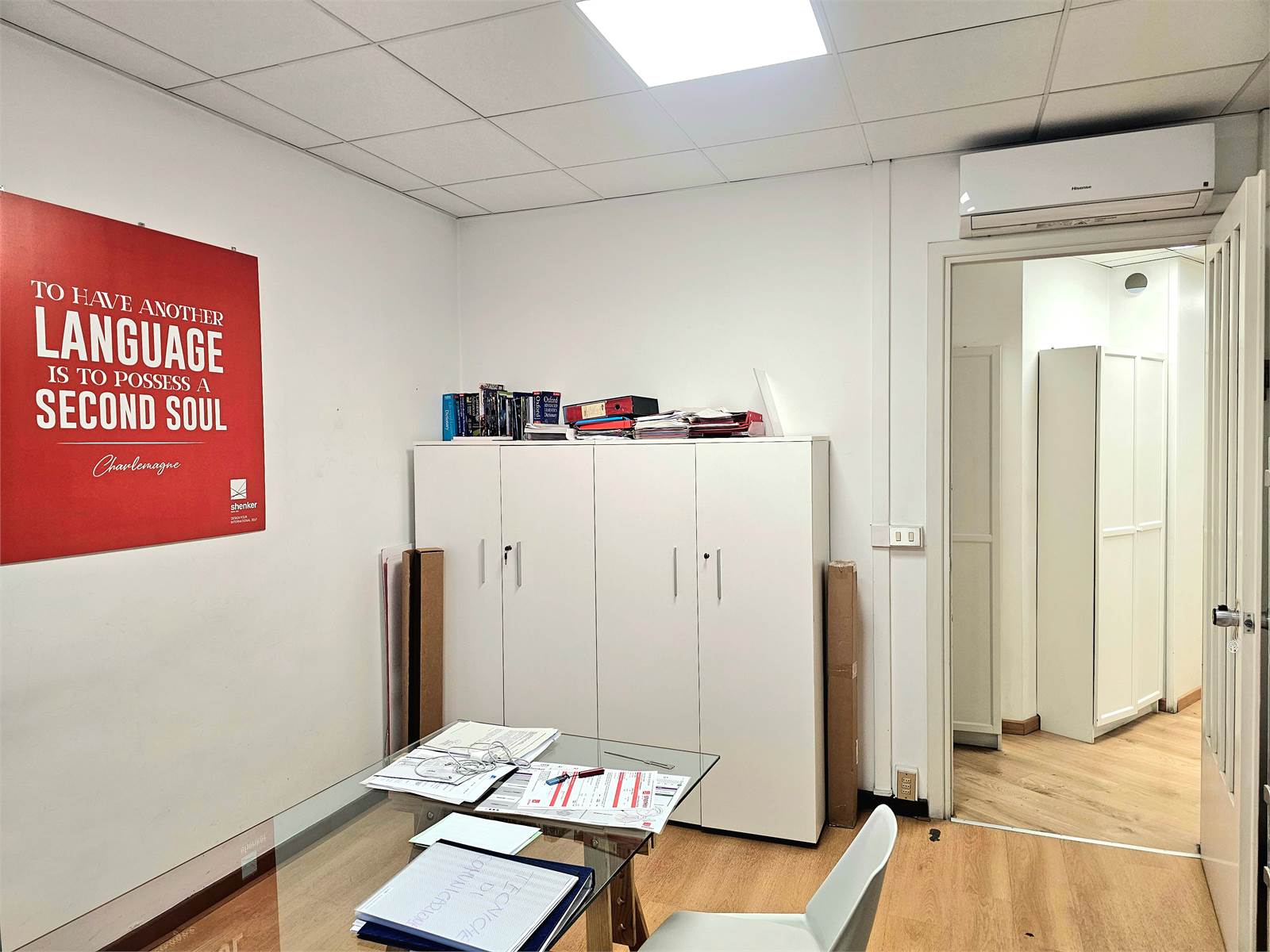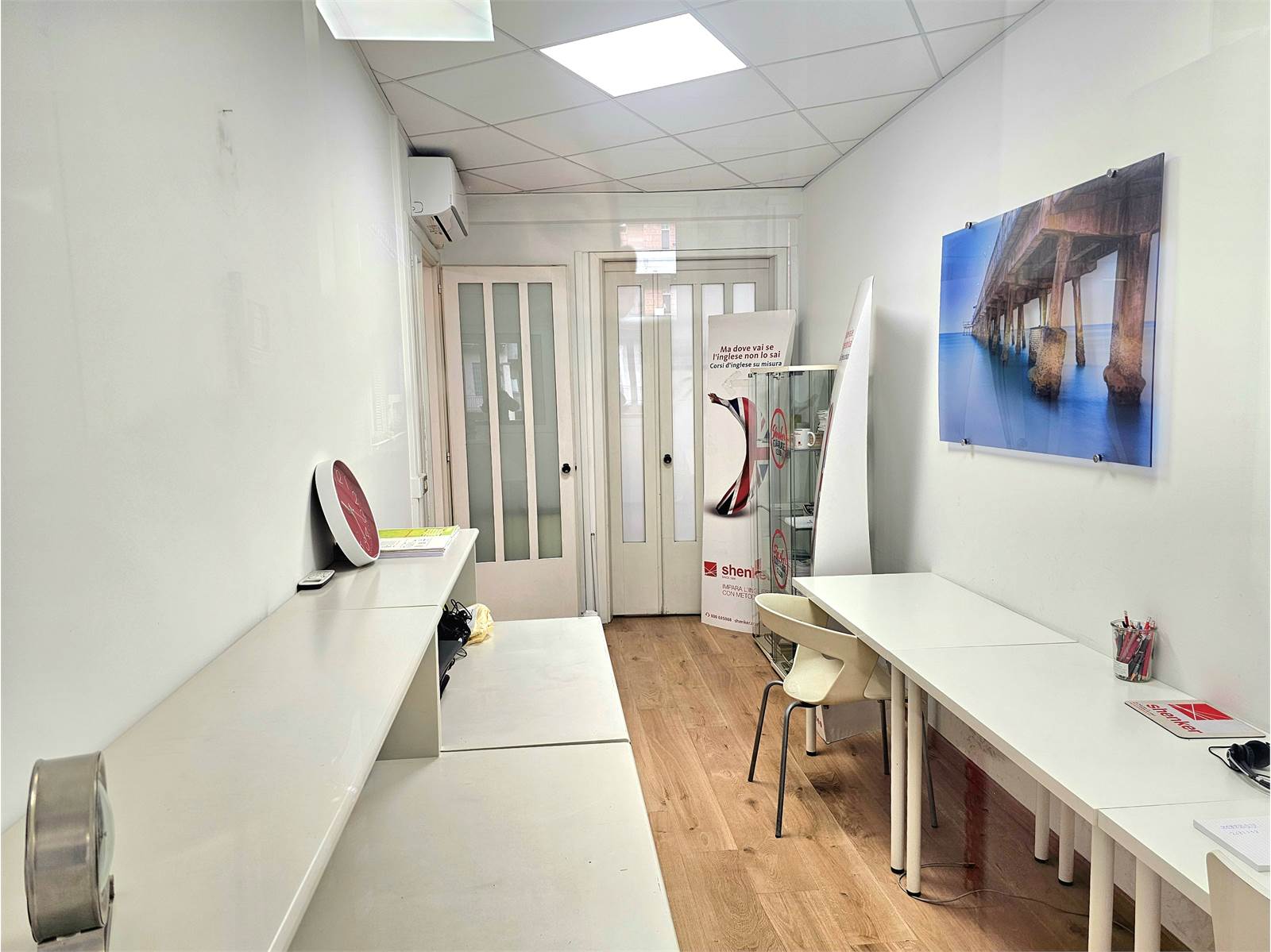 Con doppio ingresso da pianerottolo il principale accesso è su un spazioso vano reception, ampiamente vetrato e con vista su interno corte, dotato di doppio passaggio su corridoio di disimpegno che conduce ad un altro bel vano ad uso ufficio con affaccio su via principale, ad antibagno con bagno dotato di doccia e si collega ad un grande disimpegno ad uso salotto; un vano interno ad uso ufficio ed un' ampia sala riunioni (circa 40 mq) completano la proprietà.