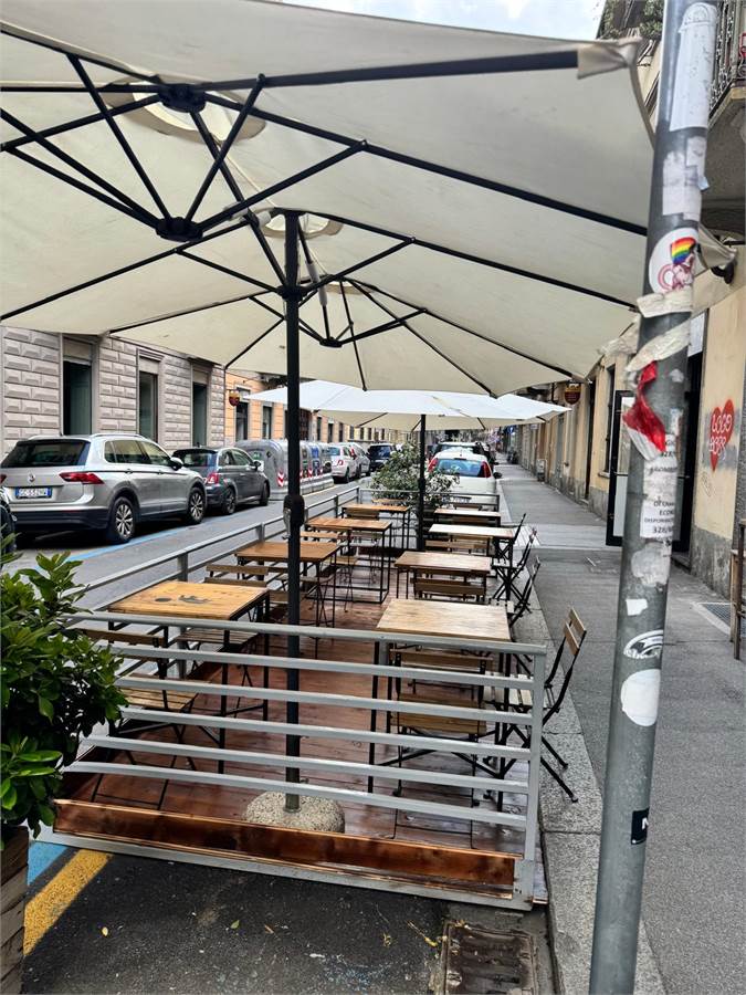 Il locale, ottimamente tenuto e condotto dall’attuale proprietà, esternamente presenta nove vetrine, e due ampi dehors esterni ( uno attualmente ancora da posizionare ).