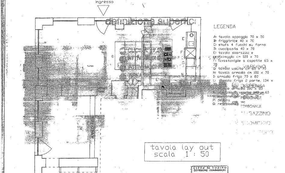 - al piano interrato (con accesso anche dalla scala delle cantine per i fornitori) un ampio vano attrezzato ad uso magazzino per lo stoccaggio della merce non deperibile, un secondo vano attrezzato con una spaziosa cella frigorifera, un terzo vano con servizio e spogliatoio per dipendenti.