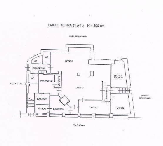 La composizione è la seguente: ingresso su spazioso disimpegno con accesso tramite bussola, ampio vano principale open space, un disimpegno, due uffici ed un locale tecnico, un locale ad uso deposito, altri due disimpegni, tre bagni di cui uno attrezzato per portatori di handicap.