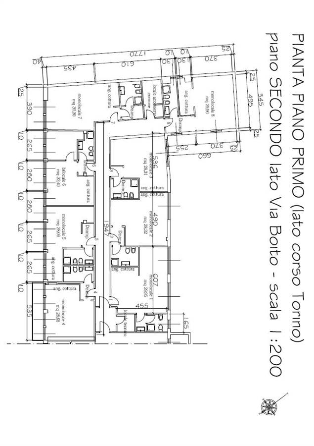 Residenziale primo piano di complessivi 290 mq, costituito da 7 monolocali e 1 bilocale tutti locati;